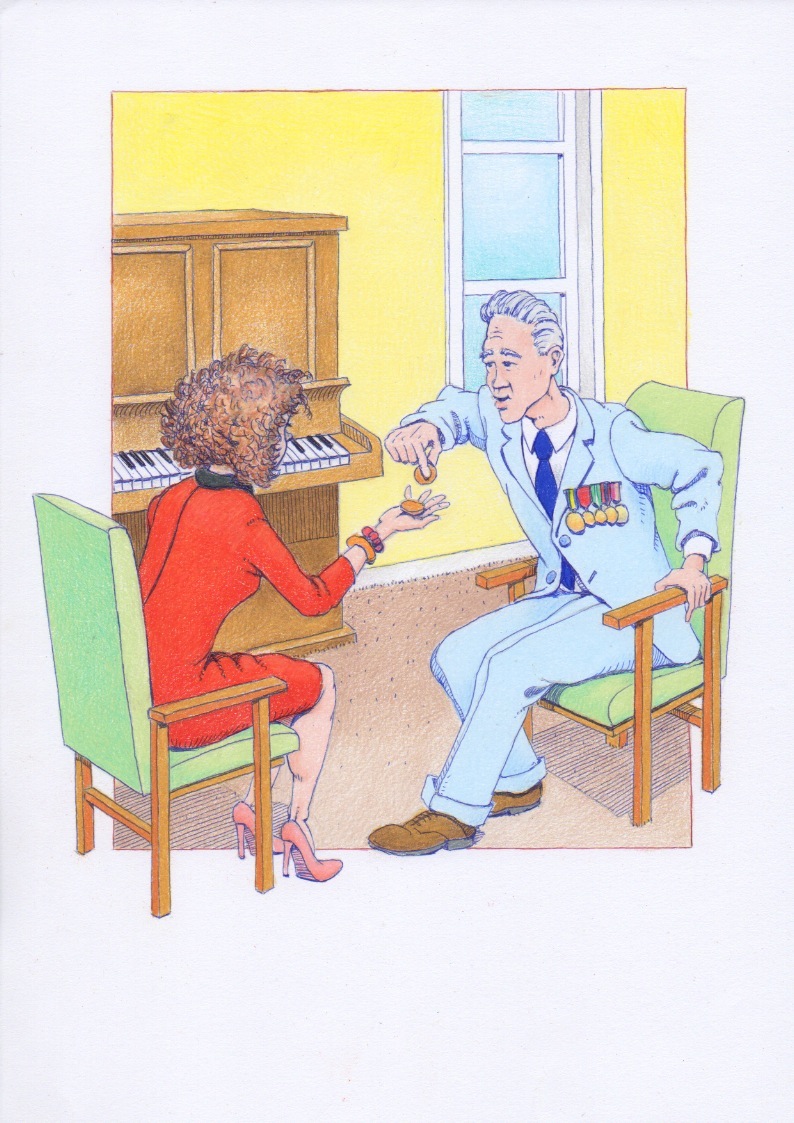 An old man sat with his daughter, his blue eyes twinkled as he opened a small wooden box and took out two pennies and placed them in her hand. ‘When I was a little boy, I raised money to help build a school in France. I have kept these pennies for you to take them to France and give them to the school for me.’